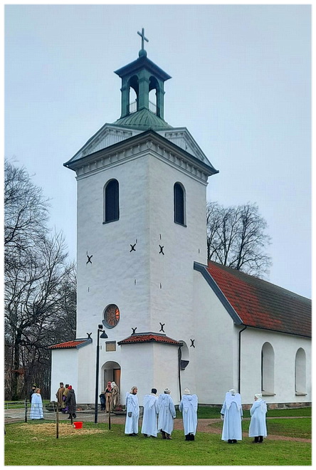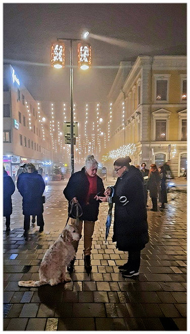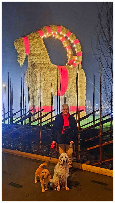 iets met vreemd gaan . . . ☺---------- Dinsdagmorgen 25 november. Daar ben ik weer! Even terug grijpen, zondag een hele leuke dag gehad. Om 8 uur in de morgen een appje van Y. of ik zin had om mee te gaan naar een grote kerstmarkt in Brunskog, en dat had ik. Was toch wel een uurtje rijden via een hele mooie route en kwamen daar aan op een grote P die al geleid werd door verkeersfiguurtjes m/v. Heel mooi terrein bij alweer een Herrgård, aan een meer, met grote schuren en leuke kleine huisjes waar vroeger het personeel van de gård hun werk deden, zoals brood bakken o.a. en woonden. Zo klein en zulke schattige huisjes maar reken er maar op dat dat vaak niet echt makkelijk was, met die intense kou ook! Goed, er waren in totaal zo'n 140 kramen en werkelijk, heel gezellig en een goede sfeer, zo wil je een Zweedse kerstmarkt dan ook zien. Kleine gezellige huisjes waar je koffie etc kon drinken, vaak op kneuterige wijze met lieve moekes met schortjes en eigen baksels. We hebben maar een paar dingetjes gekocht want de prijzen waren behoorlijk, wel leuke dingen trouwens. Een NL dame die daar een mooie verzorgde stand met eigen honing had, hield mij onverwachts een lepeltje honing voor en ik houd helemaal niet van honing . . . en toen was het alsof er een engeltje over mijn tong fietste, zó lekker en ik was helemaal verbaasd. Mevrouw legde uit hoe dat komt en dat de smaak afhankelijk is van waar de bijenkorf staat en dit is van zomerbloemen van haar eigen velden en leuk want ik heb op een dronefilmpje gezien waar en hoe haar boerderij ligt! Kortom ik ben wat wijzer geworden qua honing. Natuurlijk een potje gekocht en ik ben er nu zuinig mee, mondjesmaat eten we hier van . . . gisteren een lepeltje in de thee en ow zo lekker! Het was een super gezellige dag en we kwamen in het bijna donker om half 4 (!) weer thuis, hondjes die uit hun plaatjes gingen (man ook denk ik haha), koffie gedronken, en later wat eten bij elkaar gescharreld zodat wij toch een lekker maaltje hadden en om half 11 in de avond ging Y. weer weg☺ Gisteren hebben Dick en ik een soort podcast dag gehouden, diverse afleveringen van het weekend, heerlijk! ![]()