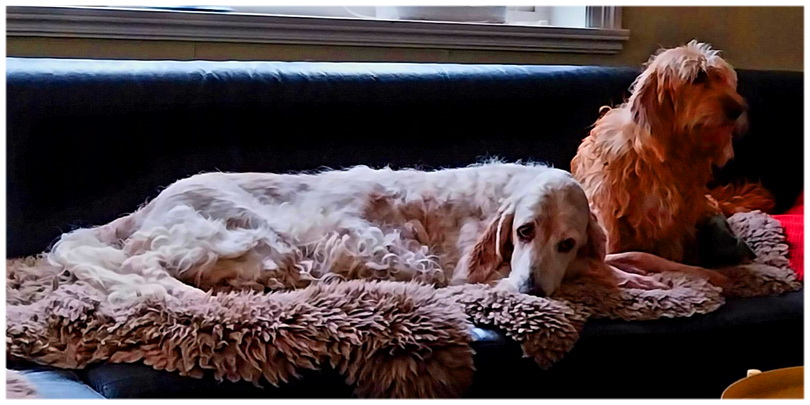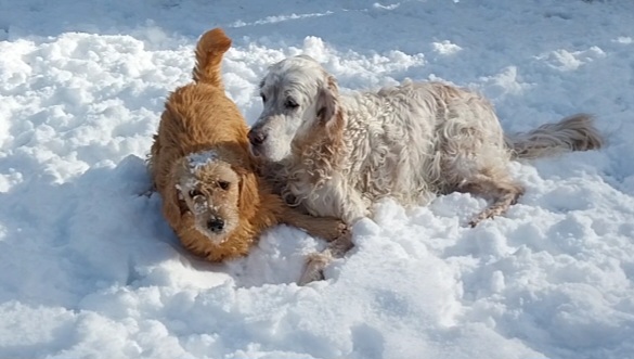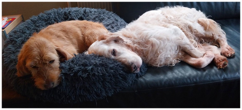 ook hebben!---------- Donderdagmorgen 30 januari. En toch is het zeker voor mij, dit is het laatste jaar Krabbels, niet dat ik geen stukjes meer tik die niet leesbaar zullen zijn, want dat is ook niet zo. Maar wel in een andere vorm, noem ze dan waarschijnlijk wel krabbels, waar ik nu al voorzichtig mee bezig ben. Alles is eindig in het leven en soms, zeg maar vaak, doet het pijn. Tijden veranderen en moet ik nog wel wat mee bewegen, maar deze site bestaat al vanaf 2001 . . . En ja Gordon Setters hebben we ook al een tijd niet meer, blijft ook een pijnpuntje. Maar goed, een feit is dat ik nog altijd met een ouderwets systeem werk wat veel tijd kost en tijd is er wel maar het kan makkelijker en moderner. Volgens Dick ben ik een aparte, houd niet van nieuwe dingen, maar ook bijvoorbeeld auto's, geef mij maar het oude vertrouwde model en zo gaat het heel vaak. Ben een echte stier qua sterrenbeeld en hou niet van veranderingen, vandaar ook dat ik die aantrekkelijke Zweedse man van gisteren maar met rust laat . . . Momenteel loopt er hier een man rond te stekkeren die zijn bril weer eens kwijt is en heb ik heb geadviseerd om er maar een tracker aan te hangen☺ ![]() Hoe lief wil je het hebben? ---------- Woensdagmorgen 29 januari. Oei moest eerst een tikfoutje van gisteren veranderen, zeg niet welke hoor, zo'n domme. Ja en dan, het sneeuwt, nu nog dikke natte zooi maar straks verandert het in droge sneeuw. Fijn voor Elin, die geniet echt van een dik pak sneeuw, wordt er helemaal dol van en dat is zo leuk om te zien, voor haar ook een mazzeltje dat zij in Zweden woont! Dick heeft net weer fijn met ze gewandeld in Skymnäs, waar nog weinig mensen gelopen hebben, alleen ziet hij zijn eigen oude voetstappen! En zoals elke dag en in de middag na mijn ronde, hondjes lekker eten, daarna pakt Elin haar 'speel' en speelt Dick weer een kwartiertje of zo met haar wat zij ook weer zo leuk vindt. De speel is zo'n slappe piepende plastic kip in een lange sok, het kan zo simpel zijn☺ Dan is het tijd voor een diepe slaap, heerlijk vinden wij dat om naar te kijken, Robbedoesje opgerold in de donut, Elin op een vachtje ineengedoken tegen een kussen, zo vredig ♥ Haha Agnes wij vinden elkaar dus gewoon stoer, leuk toch, die ervaringen uitwisselen! En toen kwam ik met een bekentenis tegen Dick . . . Zweedse mannen zijn vaak onweerstaanbaar en nu raakte ik in één klap verliefd . . . Lekker