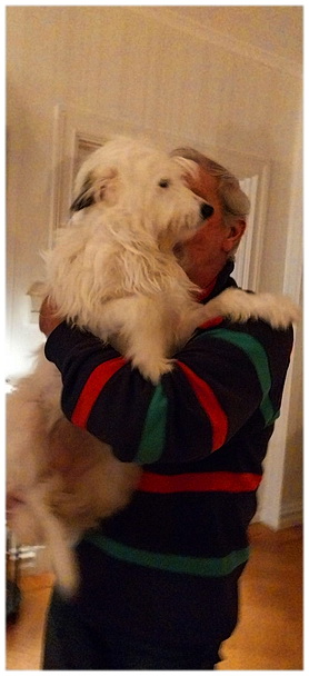 heeft Elin wel een paar korte armpjes gegeven☺---------- Zaterdagmorgen 13 december. Nog steeds grauw, grijs, saai en nat buiten, niet altijd sneeuw en ijs hoor in Zweden, uh was dit niet één van de redenen om uit NL te vertrekken?☺ Vandaag een kleine krabbel, niet veel te vertellen, wel dat wij gisteravond weer gezellige uurtjes met Joke en Anne hadden en Joke heel lekker gekookt had, we hebben gesmuld! De darmperikelen met beide hondjes zijn weer passé, dat lucht letterlijk en figuurlijk op . . . Nu boodschappen doen want morgen krijgen wij weer leuke eetbezoek! ![]() Op weg, ik zorgde voor wat lekkers bij de koffie ---------- Vrijdagmorgen 12 december. Welke Fauve en baasje heeft er zoiets spannends beleefd? Ik denk niet veel . . . Gisteravond na het eten moest Elin even een plasje doen en ging Dick met haar naar buiten, het was donker en wat mistig en écht zo snel heb ik hem nog nooit naar binnen zien stormen met een Fauve achter zich aan slepend . . . Hij ging naar buiten, Elin aan de lange rollijn, zij liep alvast het bochtje om hier voor het huis en begon ontzettend te blaffen en gelijk ziet Dick 2 elanden op een korte afstand van haar . . . Moeder eland liet dat niet op zich zitten en kwam naar Elin, op een meter afstand en uiteraard schrok Dick zich helemaal een versuffing, sleurde hondje mee en snel door het hekje de tuin in en naar binnen . . . Poehpoeh dat was effe bijkomen. Toen wij door het keukenraam keken zagen wij dus 3 elanden rustig onaangedaan door de straat lopen. Dat zijn dus belevenissen in Zweden! O ja het gaat ietsjes beter met haar, hoewel de verrassing in de keuken bij het opstaan weer groot was, pfff. Ja inderdaad ik heb vannacht iets gehoord en dacht een kras langs de voordeur maar kennelijk toch te slaperig om mij te realiseren dat dit toch echt het kleine hondje geweest moet zijn die er uit moest. Je hoort hier 's nachts buiten vaker onbestemde geluiden, dat is meestal wild wat door de tuin loopt en geweien langs de balustrade, alles went☺ Leuke belevenis toch voor een hondje en een baasje? ---------- Donderdagmorgen 11 december. Het is niet te geloven, we rollen van het één in het ander. Nu heeft Elin dezelfde verschijnselen als Robbedoesje vorige week . . . Wel wat milder maar toch, tientallen keren wilde zij naar buiten en gisteravond wilde zij bij ons in bed wat wij toegestaan hebben. Zieke kindertjes en zieke hondjes mogen bij pap en mam in bed. Beiden slecht geslapen want je verwacht elk moment er uit te moeten, Dick heeft zelfs een pyjama aan omdat hij dan ook snel naar buiten kan, zonder aankleden. Halverwege de nacht is de baby toch uit bed gegaan en lagen er verschillende slappe poeppies in de keuken, echt handig maar niet heus op een houten planken vloer en op de mat. Zij is verder helemaal ok en is totaal niet ziek, is met de wandeling mee geweest en heeft zojuist wat brokjes met stukjes gekookte kip gegeten, de speciale brokjes die Robbie momenteel ook nog eet. Met Robbie gaat het prima, alles weer goed en heeft vandaag de laatste anti biotica pilletjes. Het is kennelijk toch iets besmettelijks want die twee hondjes 'kwijlen' ook altijd met elkaar, likken elkaars snuitjes af en is het niet gek dat zij elkaar aansteken. Neemt niet weg dat we het zo af en toe behoorlijk zat zijn, al dat 'gedoe'. ---------- Woensdagmorgen 10 december. Helemaal in de war weer met de dagen, gisteren vonden wij het weekend en nu moet ik om de vuilnisbak denken want, woensdag. Hoewel de winter ook hier nog ver weg lijkt gaat vannacht toch het winterdekbed op bed, we kregen het vannacht zo af en toe toch fris. Om 8 uur in de morgen gaan de gordijnen open en je hebt in de middag het idee dat je net uit bed bent en gaan gordijntjes weer dicht om half 4☺ Toch heeft het geen winterweer even een voordeeltje en kan Dick rustig de stinksmerige camper even goed afspuiten voor hij onder de carport verdwijnt. Ook zijn de vogels en reeën minder noodruftig en scheelt het voer want zij kunnen nu nog genoeg in de natuur vinden, hoewel wij een paar minuten na thuiskomst weer aangekeken werden door smachtende reeënogen! Zij kennen exact het geluid van de auto's, camper en garagedeur! ![]() Zooooooooo lief! ---------- Dinsdagmorgen 9 december. Thuis in ons fijne stulpje! Een uur of 3 in de middag waren wij weer thuis en dat is zo fijn, want het wordt sowieso al snel donker en kun je eerst nog even rustig wat troepjes uit de camper halen. Het allereerste verzorg ik dan de hondenkinderen, nog voor wij zelf een bakkie drinken, we hadden hen onderweg al laten plassen dus geen haast nu. Doesje krijgt nog steeds 3x per dag eten en daar moet je echt om denken. Het gaat prima met haar, niets te klagen en het dieetvoer inclusief 4 pillen gaat er zo makkelijk in! Wel merken wij dat zij meer energie heeft en wil spelen of met Dick of met het babyhondje, die dit geweldig vindt, Doesje komt zelf aan met een gevulde sok en maar spelen samen, rauzen over de bank met sok en die sullige doesje laat het altijd zonder remming afpakken. Het is zo'n prachtig stel samen, altijd goed gehumeurd, altijd vrolijk en in voor een spelletje of wandelen. Vanaf vandaag worden de wandelingen weer wat langer, want Robbedoesje had aardig wat gewicht verloren en wil ik dat zij dat niet verliest aan dat gescheur buiten. En wat hebben wij gisteren een prachtige binnendoor route naar huis gereden, veel over onverharde wegen, zo mooi, zelfs met dat grijze weer! Ook nog een eland gezien die voor ons de weg overstak, altijd weer leuk. Net kijk ik even in de agenda en ging tellen . . . het kan zo maar zo zijn dat wij over een week of 7 alweer vertrekken voor een lange tijd . . . wat gaat de tijd toch snel☺ En dan weer terug komen als hier het voorjaar aanbreekt, heerlijk vooruitzicht en jawel ik hoop nog wel even op sneeuw de komende weken . . . ![]() Beetje kerstsfeer in de camper☺ ---------- Maandagmorgen 8 december. In de buurt van Borlänge. We hebben weer een prachtig plaatsje 100% naar ons hart, totaal