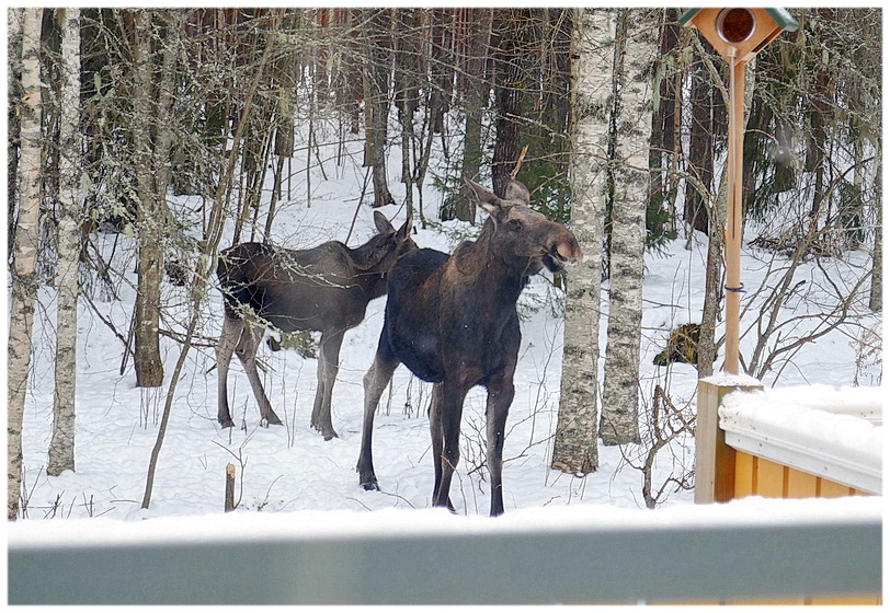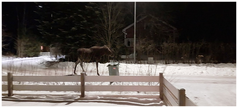 Dick met Lijntje, een hondje wat ik zo mee zou willen nemen! ---------- Donderdagmorgen 22 januari. Veel beleefd eigenlijk wel. Gisteren dus naar Karlstad, allemaal goed verlopen, mijn contact met de neuro is echt heel goed en ben ik zo blij mee! In de middag kregen wij een berichtje van Chris, onze kaas-worstman, dat er steeds reeën en 3 elanden door Mossängen liepen over de weg en hij zag hen vooral in ons straatje (zag hij bij zijn rondjehondje) OK leuk, dank je Chris! Voor ons toch niet ongewoon, wij wonen namelijk helemaal aan het randje van de bewoonde wereld grenzend aan een groot ruig onbewoond gebied vol met wild en zijn aardig wat gewend☺ Bij thuiskomst zagen wij veel grote sporen, inderdaad van elanden, rondom ons huis. Halverwege de avond blafte Elin fel en hoorden wij vlak er na een geluid alsof er een kudde paarden langs ons huis galoppeerde en toen ik buiten keek zag ik iemand met twee honden, overdadig behangen met knipperlichtjes halsbanden en reflectie en ik denk dat die elanden daarvan geschrokken waren. Goed, dan weet je dat de elanden constant in de buurt zijn maar daar hebben wij 'niets' van behalve dat het gewoon leuk is . . . Na 'winter vol liefde' ging Dick rondjehondje en adviseerde ik hem voor de grap om een zweepje mee te nemen vanwege de elanden . . . We hebben geen zweepje, en nam hij maar de fluit mee . . . Hij ging weg, ik hoorde Elin keihard blaffen en keek uit het keukenraam en kreeg de schrik van mijn leven . . . Dick was in een struggle met honden en een eland beland . . . Met twee armen uitgestrekt met de honden sprong een eland naast hem omhoog . . . Ik rende naar buiten, om te helpen, dacht nog net aan mijn camera (soort ramptoerisme ohhh?) . . . Eland kwam mijn kant op en Dick maakte dat hij weg kwam de andere kant op . . . Het imposante dier kwam onze tuin in en ik kon hem (nee háár, het was moeder eland) rustig filmen, zij keek mij aan en liep de tuin in en ging rustig staan knabbelen aan de appelboom. Dick kwam later terug en heeft 'gewoon' zijn rondje gemaakt en zag de twee elandenjongen in de tuin bij onze naaste buren staan, ook knabbelen aan hun appelboom. Hij vertelde dat hij de tuin uit kwam met de honden Elin gelijk ging plassen aan de overkant onder de grote dennenboom en hij plotseling direct achter zich gebries hoorde, omkeek en de eland naast hem stond waarop Elin panisch ging blaffen, van angst natuurlijk, Robbie zei helemaal niets . . . Eland sprong omhoog, wilde gewoon weg en dát moment zag ik dus vanuit het keukenraam! Dick zei wel dat hij nog nooit in zijn leven zó bang was. Je begint niets tegen zo'n grote sterke eland en je daarbij je kostbare hondjes in je handen hebt! Conclusie? Deze eland had geen kwaad in de zin, heeft daar dus gestaan met twee jongen, Dick kwam er aan, had hen niet gezien, de jongen verdwenen en de moeder trad beschermend op maar zag dat dit niet nodig was en probeerde ook weg te komen. Neemt niet weg dat je toch erg oplettend moet zijn hier☺ Gisteravond ontdekte Dick ook dat er een diertje onder de motorkap van de camper geweest is of nog, die aan het isolatiemateriaal heeft geplukt, en ja daar moeten we ook wat mee natuurlijk, ook niet ongevaarlijk. Vanmorgen ook weer 7 reeën in de tuin en een vreemde prachtige kat op ons terras . . . Uh saai hier? KORT FILLUMPIE KLIKKUH ![]() Hier was Dick net heel snel maar wel rustig, met een blaffende hond☺, het hoekje om gegaan, weg van die eland mwahhh ---------- Woensdagmorgen 21 januari. Zo de apen en beren heb ik ook weer even terug in hun hok gestuurd . . . Gaat goed met Robbie, is niet meer mank en loopt weer normaal en ik gedraag mij ook weer normaal, zover als mogelijk. Had kennelijk toch met een verrekte spier of zo te maken, als zij opstond ging het langzaam en moeilijk, nu helemaal over. Jaja die tante Aurora in NL, ik heb niks gezien, vette wolken hebben het hier verpest en, zeg ik eerlijk, het bed was lekker warm☺ Nee hoor zonder dollen, als de lucht gi avond helder was geweest, vanavond trouwens ook, hadden wij zeker gaan kijken, natuurlijk! Dick heeft een pad vanaf de camper naar het pad gegraven in gedeelten, we worden ouder en Dick is duidelijke sneller vermoeid, waar hij gek genoeg heel snel weer van herstelt. Het is inmiddels een dik pak ijs geworden waar je je sneeuwruimer niet mee moet lastig vallen, het is gewoon hakken en breken geworden, best vervelend en gelukkig staat er voorlopig geen sneeuw op het programma, wel ijs. Vandaag gaan wij naar Karlstad voor mijn shotjes en gaat Dick kijken of de 'stroke nurse' hem er ook even tussen kan persen, voor een gesprekje en wat onderzoekjes. ---------- Maandagmorgen 19 januari. Wat hebben we weer gezellige uurtjes met Joke en Anne gehad gisteren en wat kunnen wij kwekken toch☺ Eerst gezellig in de lekkere warme serre koffie en door het glas de mooie sneeuw en lampjes in de tuin te zien en daarna lekker gegourmet. Kostbare momenten! Bij thuiskomst wat minder grappig en bleek Doesje behoorlijk mank te zijn, gespeeld met Beepje? Geen idee, maar de schrik zat er direct in bij ons, wat nu weer? Ik heb haar achterbeentje goed bevoeld, zachtjes geknepen en bewegingen laten maken, zij gaf geen krimp en ik heb ook geen idee waar het vandaan komt. Gezien haar verleden ben je uiteraard altijd bang voor problemen met haar heupen. Ik heb haar een Carporal tablet gegeven en ben vannacht 2x gaan kijken hoe het ging met haar en was zij verplaatst naar een andere plek. Vanmorgen met angst en beven uit de mand laten gaan en het leek eigenlijk ok, totdat Dick hen ging uitlaten en zij buiten toch duidelijk nog last had, niet zoveel als gisteravond maar toch. Met eten haar dosering Metacam opgehoogd en nu maar weer afwachten. Nou komen toch gvd al die apen en beren weer op de weg bij mij . . . bah ik zou willen dat ik niet zo fatalistisch zou denken met de hondjes want voor mijzelf denk ik nooit zo . . . ---------- Zaterdagmorgen 17 januari. En heel langzaam verdwijnt de sneeuw hier uit beeld en zal niet 