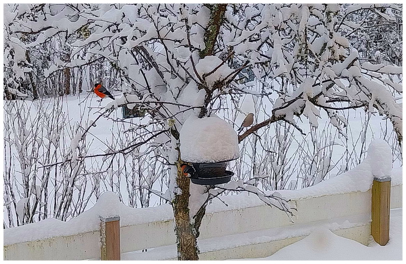 vrieskou, prachtig!Gelijk hier maar even een foto van vanmorgen uit het keukenraam, misschien gek maar dit maakt mij altijd zo blij! Gisteren kwam de flamboyante Manja weer even langs vliegen, zo kun je het gerust noemen ☺, grote goden wat een energie en na 1.5 uur moeten we echt even uitpuffen. Ik zeg niets wat verboden is hoor, want zij weet het zelf ook wel, al leest zij niet de krabbels volgens mij. Zij had haar 4 honden mee maar liet zij heel wijselijk in de auto, echt schatten van hondjes, ook voor iedereen lief maar om hier mee naar binnen te nemen is niet zo handig want dat wordt chaos, een kluwen spelende honden, rauzend over stoelen en banken. Leuk voor haar was wel dat de reeën hier weer af en aan door de tuin liepen rondom het hele huis, verwend in dit opzicht als wij zijn, kijken wij hier niet meer van op maar als er bezoek is, is dit natuurlijk heel grappig! Vlak voor zij opstapte zag zij het licht branden van haar auto en moest zij tempo maken, dat betekende donderjagende honden in de auto die zelf het licht aan gedaan hadden . . . Het blijft lachen hoor! ---------- Zondagmorgen 16 november. Vrieskou en voorlopig blijft dit ook zo en nog geen sneeuw in het vooruitzicht, ja ik zie iets staan voor over een week. Maar zover vooruit geloof ik het niet meer. Was gisteren weer gezellig met J&A naar de kerstmarkt. Eigenlijk vind ik er geen fluit aan hoor, sfeerloos en elk jaar en elke kerstmarkt dezelfde meuk te koop, maar goed een mens wil wel eens wat en met hen samen maak je er nog wat van☺ Op het grote terrein ligt een mooie echt oude Herrgård, waar een overvol restaurant is waar je amper in kunt komen en lang in de rij voor veel te dure koffie moet staan, geen optie dus, daarbij is het terrein te groot om het sfeervol te maken. Na 1.5 uur, nog lang, waren wij het zat en zijn we naar ons huis gegaan om lekker koffie te drinken en te babbelen. Vandaag gaan we geloof ik, je weet het hier nooit zeker, aan de slag om wat kerstspullen van de zolder te halen. Toegegeven, de slag om babyhondje zelf te trimmen heb ik verloren, mij veel teveel werk waarbij ik verkeerde krachten moet zetten met mijn schouder, dus maar contact met de Zweedse Fauventrimster Yvonne (ja echt waar) gelegd en heb ik een afspraak voor 2 december. Wel een endje weg . . . hmmm 226 km . . . Tja, we willen geen knoeier aan ons hondje ---------- Zaterdagmorgen 15 november. Bij het opstaan vanmorgen -8, lekker toch! Gisteravond bij het laatste avondrondje uiteraard ook al koud en de meisjes voor het eerst weer een truitje☺ ik vind dat altijd zo schattig staan . . . Vanmorgen dus voor de grote ronde, jasjes aan en Robbedoesje daarover haar reflectiehesje, mochten de jagers, indien aanwezig, denken dat er een wild dier loopt met een knalrode vacht . . . Nou ja beetje gek gezegd hoor, net of jagers overal op zullen schieten en dat is absoluut niet zo, daar zijn strenge regels voor. Wat heerlijk Ria, wat een vooruitzicht, nog tot halverwege maart 2026 (!) in Spanje, wat een luxe hè! Ik heb Daimus opgezocht en ik zag dat daar veel mooie campings in de buurt zijn, keuze zat. Als het gaat zoals wij het in gedachten hebben, vertrekken wij eind januari '26 ook naar het zuiden, Spanje, Portugal of Zuid Frankrijk, net waar het goed weer maar stationair op één plek doen wij niet, vinden wij (nu nog haha) te saai. We hebben nu net al lang op dezelfde plek gestaan en vonden dat wel even mooi geweest, gelukkig denken wij daar beiden zo over. Kreeg net weer zo'n leuk filmpje van Agnes uit Spanje en dat maakt mij zo blij en verlangend naar camperreizen, zo fijn! Vooralsnog vind ik het nu heerlijk in Zweden en kijk echt uit naar nóg meer winter, prachtig! ![]() 'Mijn' perkje, nog niet af en gaat straks nog ff bikkelen worden . . . ---------- Vrijdagmorgen 14 december. Hoera daar is het échte Zwedenweer hoor, nou een tikkie dan! Alles weer wit van de rijp en twee bevroren auto's die dus nog niet in de garage stonden ☺ Bij het opstaan -5 en belooft een prachtige zonnige dag te worden, heerlijk, heeft een mens toch weer behoefte aan! Het ziet er ook voor de komende tijd echt winters uit. Hier in de omgeving zie je al veel kerstverlichting, dat is elk jaar deze tijd, ik denk mede van oudsher omdat de dagen best al kort zijn en dit toch wat lichtheid brengt. Daarbij zijn hier de kerstmarkten ook weer begonnen en dat is sporadisch in december, gek landje hè. Morgen gaan wij met Joke en Anne naar de kerstmarkt in Ransätter, gezellig. Dick is van plan om zondig ergens een kerstboom vandaan te gaan plukken en ook wij gaan aan de kerstverlichting buiten beginnen. ![]() Vanmorgen ![]() Gisteravond eetkamerraam ---------- Donderdagmorgen 13 november. Een krabbel tikken met één oog en één oor op de tv . . . het debat. Wat een gekwijl hoor ik weer, wat een toneelspelerij, goh wat zijn ze weer aardig tegen elkaar (nog wel), wat een geslijm, wat een flauwekul, wat een onwaarheden, wat een valse beloftes. Goed dat is even stukje politiek want ik kan het niet laten, het houdt mij veel bezig maar ik houd het buiten mijn krabbel. Het babyhondje had het vanmorgen bij het opstaan alweer heel erg druk, rennen over de rand van de bank voor dan het ene dan weer het andere raam, hijgend, en soms wat piepend, er waren wel 7 reeën en reetjes zijn niet altijd grappig tegen elkaar en je ziet de rangorde fitties! Dit maakt het gewoon heel leuk voor het kleine hondje☺ Robbedoesje heeft het tijdens de wandeling wel weer bont gemaakt met haar snelheid! Dick zag op de tracker dat zij op een gegeven moment niet gezien had dat hij een andere kant was opgegaan, zij stond stil en toen Dick floot spurtte zij zijn richting op en Dick zag dat zij een snelheid van 23 km had! Dit is echt wel heel erg snel voor een hondje met een niet zuivere achterhand! Haha