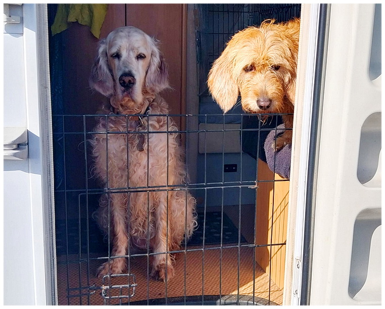 ![]() Zo, hondjes de camper in na de wandeling waarbij Beepje haar expansiedrift niet kon beheersen . . . |