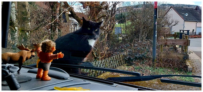 ![]() Kijk dit nou, hij of zij sprong zo maar op de motorkap (heeft Beepje net even niet gezien) en vergezelde ons later naar de geiser die geen zin had . . . |