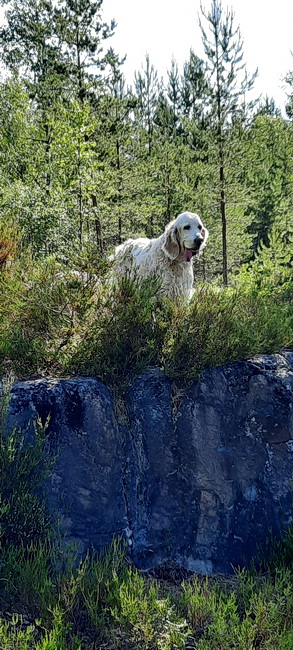 stoere wandelteam![]() Grappige foto eigenlijk want je kunt hier een verhaaltje bij verzinnen: Dick vertelt iets droevigs, ik probeer hem te troosten en Joke schrikt van het verhaal en Anne neemt er nog maar een slok bier op haha ---------- Zaterdagmorgen 1 juli. Gisteren weer een leuke, voor mijn doen volle middag. Eerst naar een grote loppis waar Wendy niet uitgekeken raakte en Dick trouwens ook niet en leggen dan de focus weer op bepaalde dingen dus kwamen we weer met spulletjes thuis. Wel grappig dat Wendy alles opzoekt op google via afbeelding en dan kan zien hoe oud het is, de herkomst en wat voor waarde iets heeft en je er teveel of te weinig (dan is het pas interessant!) voor moet betalen. Tja en of ík het echt mooi cq leuk vind is niet zo belangrijk geloof ik☺, ach ik laat ze dan maar gewoon gaan en accepteer dat ik ook dingen in huis heb die ik dus niet mooi vind, volgens mij heet dat in goed Nederlands 'polderen'. . . Daarna zijn we naar de Tosseklätten gegaan, dat is een steile berg op met de auto, de steilste in Zweden, een helling van van 20%! Bovenop een rondje gelopen, we hadden alleen Dino en Elin mee vanwege ruimte in de auto, Dick en Wendy de uitkijktoren in, waren wij al meerdere keren geweest en daarna nog wat gegeten/gedronken in het kleine restaurantje. Jammer genoeg overgegaan in gemeentehanden en misten wij de lekkere zelfgemaakte ijsjes van de vorige uitbaters. Waarom blijft nou nooit eens iets wat zo leuk was bij het oude? Bij thuiskomst zijn Dick en Wendy gelijk met alle hondenkinderen naar het bos gegaan voor een schaduwronde en ik een pan vega macaroni gemaakt heb. In de avond rust en ben ik blij dat ik om half 11 in mijn bed lig. Direct gaan Dick en Wendy naar de waterval waar om 12 uur de sluizen weer open gaan, daarna Anne ophalen voor een knappe wandeling met z'n drieën en zorgen wij weer voor een bbq bij thuiskomst. Zo dag ook weer gevuld. ![]() Tosseklätten ![]() Onze energieke dochter met Dino alias peukje, alias Senna ![]() Mooi plaatje, mooi hondje ---------- Vrijdagmorgen 30 juni. Wat een verrassing Ardi, hartstikke bedankt en je lieve woorden doen ons goed! Even uitleggen voor de anderen: Gistermiddag kregen wij heel gezellig bezoek van Angelika en René uit Zierikzee, dat rijmt, zij kwamen een pakje brengen van Ardi ook uit Zeeland. Ardi heeft ook altijd Gordon Setters gehad, nu niet meer maar wel twee beeldschone katten, en volgt de krabbels al jaren en zie je zo af en toe in het gastenboek, reacties op mijn FB en soms een privé berichtje op FB. Nu had zij van Angelika gehoord dat zij naar Zweden gingen en precies in de omgeving waar wij wonen en kreeg Ardi een ideetje! Echt zo leuk en zo gewaardeerd door ons! Er zitten lekkere Zeeuwse snoepjes in en jahaaa ook drop natuurlijk en ook aan de hondjes is gedacht! Ook A&R zijn aangestoken met het Zwedenvirus maar moeten vanwege werk nog even hun plannetjes in de koelkast zetten. Grappig, nooit eigenlijk een link met Zeeland gehad en nu plotseling wel, ook door Elin die uit Zeeland komt! Uh de honden zijn allemaal heel netjes getrimd hoor, maar van Roos maak ik tegenwoordig wat minder werk want zij kan niet zo lang meer op de trimtafel staan, geloof ik dan, misschien is het dat niet maar voel ik het zelf zo. Daarbij is het ook wel makkelijk, zij heeft beduidend minder vacht dan pop, ik heb pop haar dijen goed uitgedund en je ziet nu eigenlijk het verschil niet meer tussen haar geopereerde beentje en de andere. Verder hebben Dick en Wendy het ontzettend leuk gehad en waren niet eens echt afgedraaid en hebben zich geen seconde verveeld, toch leuk zo hè! De tijd vliegt en dinsdag vertrekt zij weer en is hier dan toch echt 3 weken geweest, niet te geloven. Vannacht heeft het erg geregend, nu heerlijk buiten met 18 graden en bedenken we wat wij nog gaan doen. Vandaag geloof ik ergens naar een grote loppis.