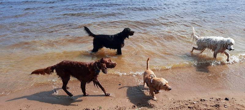 wildvoer, dat laatste voor de reeën. Dit zijn de honden van Viking en Manja hier op een Italiaans strand, van links naar rechts: Miesje, Trudie, Jelle en Peppa Ja Agnes dat denk ik ook, dat de Griekse