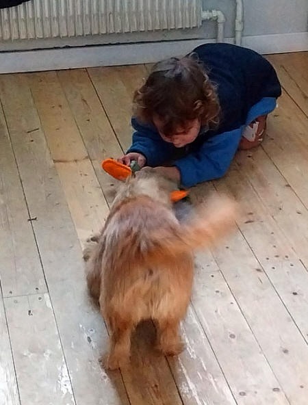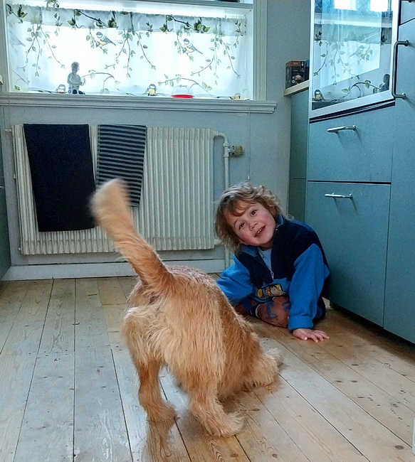 ![]() Dit kost aardig wat zelfbeheersing hè kleine foof, dit mocht even voor de foto want daarna moest zij weer op de grond hoor