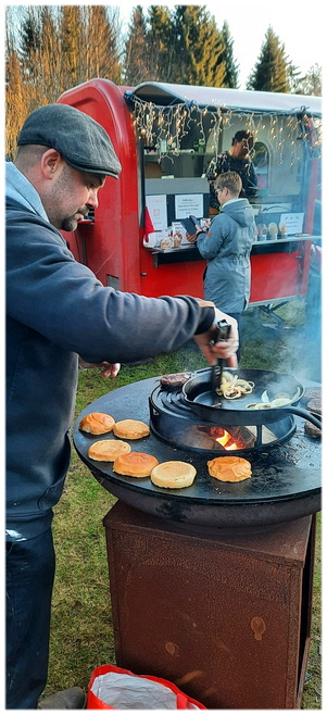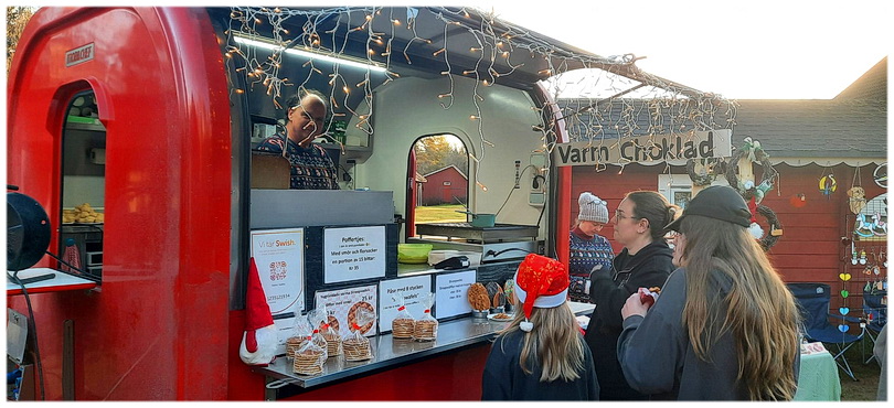 iets met vreemd gaan . . . ☺---------- Dinsdagmorgen 25 november. Daar ben ik weer! Even terug grijpen, zondag een hele leuke dag gehad. Om 8 uur in de morgen een appje van Y. of ik zin had om mee te gaan naar een grote kerstmarkt in Brunskog, en dat had ik. Was toch wel een uurtje rijden via een hele mooie route en kwamen daar aan op een grote P die al geleid werd door verkeersfiguurtjes m/v. Heel mooi terrein bij alweer een Herrgård, aan een meer, met grote schuren en leuke kleine huisjes waar vroeger het personeel van de gård hun werk deden, zoals brood bakken o.a. en woonden. Zo klein en zulke schattige huisjes maar reken er maar op dat dat vaak niet echt makkelijk was, met die intense kou ook! Goed, er waren in totaal zo'n 140 kramen en werkelijk, heel gezellig en een goede sfeer, zo wil je een Zweedse kerstmarkt dan ook zien. Kleine gezellige huisjes waar je koffie etc kon drinken, vaak op kneuterige wijze met lieve moekes met schortjes en eigen baksels. We hebben maar een paar dingetjes gekocht want de prijzen waren behoorlijk, wel leuke dingen trouwens. Een NL dame die daar een mooie verzorgde stand met eigen honing had, hield mij onverwachts een lepeltje honing voor en ik houd helemaal niet van honing . . . en toen was het alsof er een engeltje over mijn tong fietste, zó lekker en ik was helemaal verbaasd. Mevrouw legde uit hoe dat komt en dat de smaak afhankelijk is van waar de bijenkorf staat en dit is van zomerbloemen van haar eigen velden en leuk want ik heb op een dronefilmpje gezien waar en hoe haar boerderij ligt! Kortom ik ben wat wijzer geworden qua honing. Natuurlijk een potje gekocht en ik ben er nu zuinig mee, mondjesmaat eten we hier van . . . gisteren een lepeltje in de thee en ow zo lekker! Het was een super gezellige dag en we kwamen in het bijna donker om half 4 (!) weer thuis, hondjes die uit hun plaatjes gingen (man ook denk ik haha), koffie gedronken, en later wat eten bij elkaar gescharreld zodat wij toch een lekker maaltje hadden en om half 11 in de avond ging Y. weer weg☺ Gisteren hebben Dick en ik een soort podcast dag gehouden, diverse afleveringen van het weekend, heerlijk! ![]()
