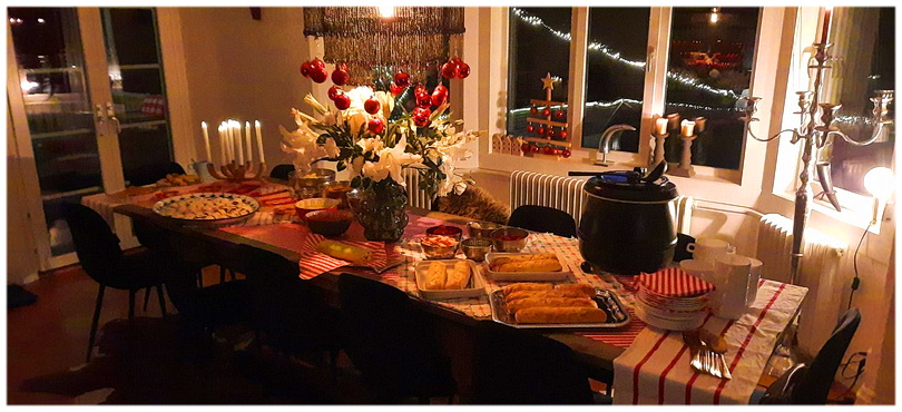 heeft Elin wel een paar korte armpjes gegeven☺---------- Zaterdagmorgen 13 december. Nog steeds grauw, grijs, saai en nat buiten, niet altijd sneeuw en ijs hoor in Zweden, uh was dit niet één van de redenen om uit NL te vertrekken?☺ Vandaag een kleine krabbel, niet veel te vertellen, wel dat wij gisteravond weer gezellige uurtjes met Joke en Anne hadden en Joke heel lekker gekookt had, we hebben gesmuld! De darmperikelen met beide hondjes zijn weer passé, dat lucht letterlijk en figuurlijk op . . . Nu boodschappen doen want morgen krijgen wij weer leuke eetbezoek! ![]() Op weg, ik zorgde voor wat lekkers bij de koffie ---------- Vrijdagmorgen 12 december. Welke Fauve en baasje heeft er zoiets spannends beleefd? Ik denk niet veel . . . Gisteravond na het eten moest Elin even een plasje doen en ging Dick met haar naar buiten, het was donker en wat mistig en écht zo snel heb ik hem nog nooit naar binnen zien stormen met een Fauve achter zich aan slepend . . . Hij ging naar buiten, Elin aan de lange rollijn, zij liep alvast het bochtje om hier voor het huis en begon ontzettend te blaffen en gelijk ziet Dick 2 elanden op een korte afstand van haar . . . Moeder eland liet dat niet op zich zitten en kwam naar Elin, op een meter afstand en uiteraard schrok Dick zich helemaal een versuffing, sleurde hondje mee en snel door het hekje de tuin in en naar binnen . . . Poehpoeh dat was effe bijkomen. Toen wij door het keukenraam keken zagen wij dus 3 elanden rustig onaangedaan door de straat lopen. Dat zijn dus belevenissen in Zweden! O ja het gaat ietsjes beter met haar, hoewel de verrassing in de keuken bij het opstaan weer groot was, pfff. Ja inderdaad ik heb vannacht iets gehoord en dacht een kras langs de voordeur maar kennelijk toch te slaperig om mij te realiseren dat dit toch echt het kleine hondje geweest moet zijn die er uit moest. Je hoort hier 's nachts buiten vaker onbestemde geluiden, dat is meestal wild wat door de tuin loopt en geweien langs de balustrade, alles went☺ Leuke belevenis toch voor een hondje en een baasje? ---------- Donderdagmorgen 11 december. Het is niet te geloven, we rollen van het één in het ander. Nu heeft Elin dezelfde verschijnselen als Robbedoesje vorige week . . . Wel wat milder maar toch, tientallen keren wilde zij naar buiten en gisteravond wilde zij bij ons in bed wat wij toegestaan hebben. Zieke kindertjes en zieke hondjes mogen bij pap en mam in bed. Beiden slecht geslapen want je verwacht elk moment er uit te moeten, Dick heeft zelfs een pyjama aan omdat hij dan ook snel naar buiten kan, zonder aankleden. Halverwege de nacht is de baby toch uit bed gegaan en lagen er verschillende slappe poeppies in de keuken, echt handig maar niet heus op een houten planken vloer en op de mat. Zij is verder helemaal ok en is totaal niet ziek, is met de wandeling mee geweest en heeft zojuist wat brokjes met stukjes gekookte kip gegeten, de speciale brokjes die Robbie momenteel ook nog eet. Met Robbie gaat het prima, alles weer goed en heeft vandaag de laatste anti biotica pilletjes. Het is kennelijk toch iets besmettelijks want die twee hondjes 'kwijlen' ook altijd met elkaar, likken elkaars snuitjes af en is het niet gek dat zij elkaar aansteken. Neemt niet weg dat we het zo af en toe behoorlijk zat zijn, al dat 'gedoe'. ---------- Woensdagmorgen 10 december. Helemaal in de war weer met de dagen, gisteren vonden wij het weekend en nu moet ik om de vuilnisbak denken want, woensdag. Hoewel de winter ook hier nog ver weg lijkt gaat vannacht toch het winterdekbed op bed, we kregen het vannacht zo af en toe toch fris. Om 8 uur in de morgen gaan de gordijnen open en je hebt in de middag het idee dat je net uit bed bent en gaan gordijntjes weer dicht om half 4☺ Toch heeft het geen winterweer even een voordeeltje en kan Dick rustig de stinksmerige camper even goed afspuiten voor hij onder de carport verdwijnt. Ook zijn de vogels en reeën minder noodruftig en scheelt het voer want zij kunnen nu nog genoeg in de natuur vinden, hoewel wij een paar minuten na thuiskomst weer aangekeken werden door smachtende reeënogen! Zij kennen exact het geluid van de auto's, camper en garagedeur! ![]() Zooooooooo lief! ---------- Dinsdagmorgen 9 december. Thuis in ons fijne stulpje! Een uur of 3 in de middag waren wij weer thuis en dat is zo fijn, want het wordt sowieso al snel donker en kun je eerst nog even rustig wat troepjes uit de camper halen. Het allereerste verzorg ik dan de hondenkinderen, nog voor wij zelf een bakkie drinken, we hadden hen onderweg al laten plassen dus geen haast nu. Doesje krijgt nog steeds 3x per dag eten en daar moet je echt om denken. Het gaat prima met haar, niets te klagen en het dieetvoer inclusief 4 pillen gaat er zo makkelijk in! Wel merken wij dat zij meer energie heeft en wil spelen of met Dick of met het babyhondje, die dit geweldig vindt, Doesje komt zelf aan met een gevulde sok en maar spelen samen, rauzen over de bank met sok en die sullige doesje laat het altijd zonder remming afpakken. Het is zo'n prachtig stel samen, altijd goed gehumeurd, altijd vrolijk en in voor een spelletje of wandelen. Vanaf vandaag worden de wandelingen weer wat langer, want Robbedoesje had aardig wat gewicht verloren en wil ik dat zij dat niet verliest aan dat gescheur buiten. En wat hebben wij gisteren een prachtige binnendoor route naar huis gereden, veel over onverharde wegen, zo mooi, zelfs met dat grijze weer! Ook nog een eland gezien die voor ons de weg overstak, altijd weer leuk. Net kijk ik even in de agenda en ging tellen . . . het kan zo maar zo zijn dat wij over een week of 7 alweer vertrekken voor een lange tijd . . . wat gaat de tijd toch snel☺ En dan weer terug komen als hier het voorjaar aanbreekt, heerlijk vooruitzicht en jawel ik hoop nog wel even op sneeuw de komende weken . . . ![]() Beetje kerstsfeer in de camper☺ ---------- Maandagmorgen 8 december. In de buurt van Borlänge. We hebben weer een prachtig plaatsje 100% naar ons hart, totaal
