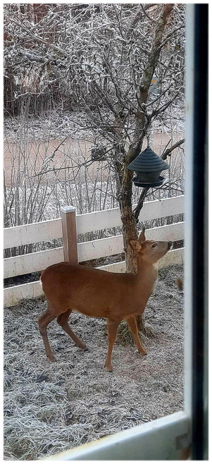 ![]() Hoe Zweeds wil je het hebben? ---------- Zaterdagmorgen 22 november. Gelijk maar een vraag beantwoorden, ' ja het gaat goed met mij en soms uitschieters dat ik weer teveel gedaan heb, uh ook lang tikken met twee handen is soms wat teveel'. Met het voeren van het wild doen wij net als anders maar er komen wel steeds meer reeën . . . vogels is sowieso al heel veel en is de grote bonte specht er ook steeds bij, de eksters zijn meestal ergens anders denk ik, poeh gelukkig. Toen wij vanmorgen opstonden liepen de reeën al te dralen, nu voor het huis en grappig om te zien hoe zij ons terwijl wij door het huis lopen observeren! Dick zei al dat zij eigenlijk willen aanbellen haha We hebben inmiddels al veel gezellige batterijlichtjes in huis en vandaag gaat Dick deze op het overdekte terras ook ophangen. Eigenlijk wil ik dat hij een dronefilmpje maakt rondom het huis als het al schemerig is en met de lampjes aan, leuk toch! Echte kaarsen hebben wij alleen aan op de eettafel tijdens eten, het is toch gevaarlijk vinden wij in zo'n houten huis. ![]() Vanmorgen ---------- Vrijdagmorgen 21 november. Wat een mooi winterweer, bij het opstaan vanmorgen -15! Zelfs het kleine uitlaatje met de meiden, als wij net uit bed komen, misschien 10 minuten, toch even een truitje aan . . . ook omdat ik het zo schattig vind staan. Soms sla ik een dagje over met de krabbel, dan heb ik al helemaal niets te krabbelen terwijl ik eigenlijk altijd wel wat weet maar ja, vinden jullie dat leuk, thats the question. Inmiddels ben ik happy met m'n huisfietsje, lekker op je eigen stoeltje en maar draaien met die benen, ben echt op het mininiveau, 3x per dag 10 minuten, stelt niks voor natuurlijk, maar het beginnetje is er! Ook handig dat je hem op zwaarte kunt zetten en heb nu een tikkie weerstand. Gisteren had ik stukken meloen (niet lekker genoeg voor onszelf) voor de vogels neergezet maar zij kwamen er niet aan, tot vanmorgen, wij zagen dat zij de zaadjes er uit pulkten! De Peugeot staat nu weer in de garage aan de overkant waar het huis niet bewoond is (met toestemming☺) en de Subaru is nu weer aan zet, die 's nachts in onze eigen garage staat. Is hier echt nodig want anders kun je 2x per dag je auto ontijzen en nu heeft het nog niet eens gesneeuwd verder. Verder heb ik mij weer gestort op het echte boeken lezen en wat ik nu lees, het verhaal van prins Harry, 'Reserve', ik had niet gedacht dat dit mij zo zou boeien, gek want ik ben gek op biografieën. Ik heb het boek voor een koopje gekocht en het heeft mij echt te pakken, echt interessant hoe hij zijn leven beschrijft (het gemis van zijn moeder) en vooral een stuk over zijn diensttijd is echt interessant. Het is wel een dikke pil van 527 bladzijden! ![]() ---------- Woensdagmorgen 19 november. Sinds gisteravond heeft het gesneeuwd en alles is weer heel mooi, een serene rust buiten, alle geluiden, als die er al zijn, worden gedempt door de witte deken. Hoef niet te vertellen hoe gek ik op sneeuw ben maar nu voelt het een beetje dubbel. Dit heeft te maken met de uitspraak van de chirurg dat ik erg moet opletten om niet te vallen. Gek genoeg ben ik normaal gesproken nooit bang om te vallen, ook niet met sneeuw of ijs, maar nu dus wel. Gistermiddag samen een rondje gelopen en lopen wij als een oud stel, wat we ook zijn natuurlijk, gearmd en heb ik het gevoel ondersteuning nodig te hebben, de straat was wit, aangevroren damp. Godsamme wat erg, dat afhankelijkheidsgevoel, bahhhhhh Wel heb ik inmiddels zo'n minifietsje om toch in huis wat fietsbewegingen te blijven maken. Soms praat ik wat tegen mezelf en zeg ik nadrukkelijk,' het is nog maar ruim 2 maanden geleden Yvonne dat je geopereerd bent, wat wil je nou toch?' ![]() ---------- Dinsdagmorgen 18 november. Nog mooier buiten vandaag, vannacht gemist, hard gevroren dus alles met een mooi wit kanten randje. Inmiddels vermaken wij ons kostelijk met al het wild in de buurt! De reeën lopen rond, sprongen gisteren in de voortuin over het hekje om het vogelvoer op te eten! In de ochtend staan zij een stukje verderop te wachten op het geluid van de garagedeur want dat betekent dat de emmertjes gevuld worden, zo leuk. Vogeltjes die de hele dag heen en weer vliegen om lekker te komen eten hier. Ja het kost wel wat want alleen de zonnebloempitten zijn dit jaar al 3x zo duur geworden . . . Dick had laatst bij de avondronde plotseling een das vlak voor hem die uit een greppel langs de weg kwam en via een duiker naar de andere kant van de weg ging. Elke avond, wanneer wij rustig op de bank zitten hoor je geluiden in de tuin en slaat Elin regelmatig even aan, je ziet niets want het is stikdonker in de tuin. Ja hoor Ria, groot gelijk, de meeste camperaars willen volgens mij liever aan de kust maar het is veel mooier en rustiger om ietsjes het binnenland in te gaan, maar misschien de nachten wat kouder? Ach dan slaap je ook lekker!