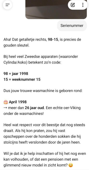 liever liefst---------- Woensdagmorgen 29 oktober. O ja Marian, het is zeker oppassen, nu nog geen sneeuw en gladheid maar dat kan zo maar in 1 dag veranderen hier! Het is zo'n 4 graden momenteel, en gisteravond dacht ik, het dubbele dekbed moet er vast al op maar dat bleek toch nog ff niet nodig. Gistermiddag kwamen Joke en Anne en er viel weer veel te babbelen! Bij Chris de bbq man had ik heerlijke erwtensoep gekocht, wat hij in een grote hoeveelheid maakt en dat was smullen. Echt mijn 'eigen erwtensoep' is ook altijd lekker maar dit toch nog veel smakelijker. J&A zijn altijd van die dankbare eters, vinden eigenlijk alles lekker! Ik heb hier vast wel eens verteld dat als je een huis in Zweden koopt, het witgoed er altijd bij in begrepen is. Zodoende hebben wij een heel ouderwetse wasmachine (onze uit NL staat werkeloos in de kelder) in de badkamer staan, die echt heel goed bevalt maar was ik toch wel benieuwd naar zijn leeftijd. Dus een foto gemaakt van het bedieningspaneel en opgestuurd naar ChatGPT en zijn leeftijd gevraagd. 'Hij' schatte een bepaalde leeftijd maar had liever ook nog een artikelnummer en aangezien hier een hele nette man gewoond heeft, waren alle papieren nog compleet en heb ik daar een foto van gemaakt en zie hier het antwoord wat ik zo leuke vind! ![]() Issie leuk of issie leuk? ---------- Dinsdagmorgen 28 oktober. Jullie horen eigenlijk niets van mij over de verkiezingen, apart toch? Ik had mij best verheugd op de debatten maar hoho niets voor mij meer, dit zijn geen eerlijke debatten met respect voor elkaars andere mening maar ordinaire scheldpartijen, en dan ben ik er klaar mee. Wel hebben wij al gestemd, dat gaat wat anders als je in het buitenland woont. Verder laten wij alles lekker over ons heenkomen, nou eigenlijk niet dus want wij kijken nergens naar alleen luisteren wij naar wat podcasten en ben ik aan een luisterboek bezig, uh over het leven van Johan Derksen☺☺en tussendoor muziek luisteren. Vanmiddag moeten wij onze vaccinaties halen maar ik sla de corona over, dat stop ik echt mee, Dick is er nog niet uit, moetie zelf weten! Ik zie het momenteel erg mistig worden en dat terwijl ik straks al een waterig zonnetje gezien heb. De wintertijd is bij ons nog niet echt doorgedrongen geloof ik, 's avonds om een uur of 9 worden de luikjes zwaar en 's morgens om 7 uur gaan de luikjes al open. Grappig genoeg merken wij aan de honden totaal niets, die zijn vlekkeloos overgegaan. Op verzoek van de Fauvenclub heb ik gisteren een heel stuk geschreven over Elin, hoe het haar vergaat in Zweden, zo leuk om te doen, compleet met foto's en dat komt in het kerstnummer, want ja wij krijgen nog altijd een prachtig blad in kleur, 4x per jaar. Ik vind dat echt leuk om te doen, als ik maar kan rammen op de knoppen . . . ![]() Deze wilde ik jullie niet onthouden! Wendy heeft deze steen geverfd, prachtig hè! ------------ Maandagmorgen 27 oktober. Zwaarmoedige gedachten gisteren? Nou nee hoor, is de realiteit en soms moet je gewoon dingen overdenken en je afvragen wat wijsheid is, en dat overdenken doe ik dus eigenlijk o.a. al tikkend hier. Daarbij kijk ik steeds op 'het weer' of er al sneeuw verwacht wordt want . . . de chirurg was een beetje bang met mij in de winter in Zweden zei hij . . . de schouder blijft nog 3 à 4 maanden erg kwetsbaar (ingroeien) en moet ik er vooral niet op vallen. Uiteraard hebben Dick en ik al de strategie besproken hoe wij dit gaan handelen want autorijden mag ik ook voorlopig nog niet. Gisteren weer gezellige NL uurtjes op Zweedse bodem, in de ochtend kwam lieve buuffie even langs de post brengen wat zij regelt als wij weg zijn en ondertussen hadden André en Manja gevraagd of wij zin in koffie en een soeppie hadden in de middag. Ja dus, en heul veul gekwekt, op z'n Brabants, ik was kapot toen wij thuiskwamen. Had wel als consequentie dat Dick een glas dure whisky moest afslaan want normaal ben ik de BOB oeiiiiiii Gezellig, ook Joke en Anne zijn gisteren weer terug uit NL gekomen en aangezien wij weten hoeveel werk je hebt als je thuiskomt met de camper springen wij elkaar niet gelijk op de nek☺, hoewel wij altijd popelen om elkaar weer te zien, altijd veel bij te babbelen! Verder is het weer hier best saai, grijs en windstil maaarrr wel droog. ---------- Zondagmorgen 26 oktober. Ik begrijp dat mijn berichtje gisteren een klein schokje teweeg bracht. Een stukje tikken in de ochtend behoort tot mijn ritueel en doe ik ook voor mezelf, al zo'n 25 jaar volgens mij en wil ik ook het liefst blijven doen. Al tikkend bedenk ik het en het is maar zelden dat ik geen stof heb. Allereerst John en Rianne, wat een lieve mail heb ik van jullie gekregen, bedankt, en zeker weet ik dat jullie trouwe fans zijn! Wat naar voor je schoonmoeder en heeft zij ook een totale schouderprothese gekregen en waar? Ik ben geopereerd door een schouderspecialist, dr Maarten van der List in de Bergmanclinic Naarden (waarom het niet gewoon kliniek is weet ik ook niet) zie youtube. Misschien heb ik wel heel veel geluk gehad en gek genoeg de medische ingrepen aan het bewegingsapparaat in de loop der jaren zijn bij mij altijd goed gelukt, hiephiephoera. Zelf zijn wij ook nog steeds verwonderd hoe alles gegaan is en mijn situatie veel verder is dan gebruikelijk, het kost echt allemaal tijd en zal bij de één wat meer dan bij de ander zijn. Gisteren bijvoorbeeld, al veel teveel gedaan, geen pijn maar zwaar vermoeid. Ja hoor Jetty en Kees, snel weer tot ziens! Ohh Ria dat is ook wat met je enkel, ze zeggen vaak ook dat je beter kunt breken dan kneuzen, dat duurt vaak erg lang. Jeetje lekker positief antwoord hè☺ Goh 'grappig?' dat jullie ook aan zo'n natuurlaatsteplek denken, ik heb virtueel al wat rondgekeken in NL maar of het hier in Zweden ook kan betwijfel ik. Maar wat fijn als dat in je eigen woonomgeving is! Ze zijn hier in dat opzicht niet zo vooruitstrevend, sterker nog, je mag als nabestaande niet eens de as in je bezit hebben! Nog iets vervelends, want niet alles is hier 