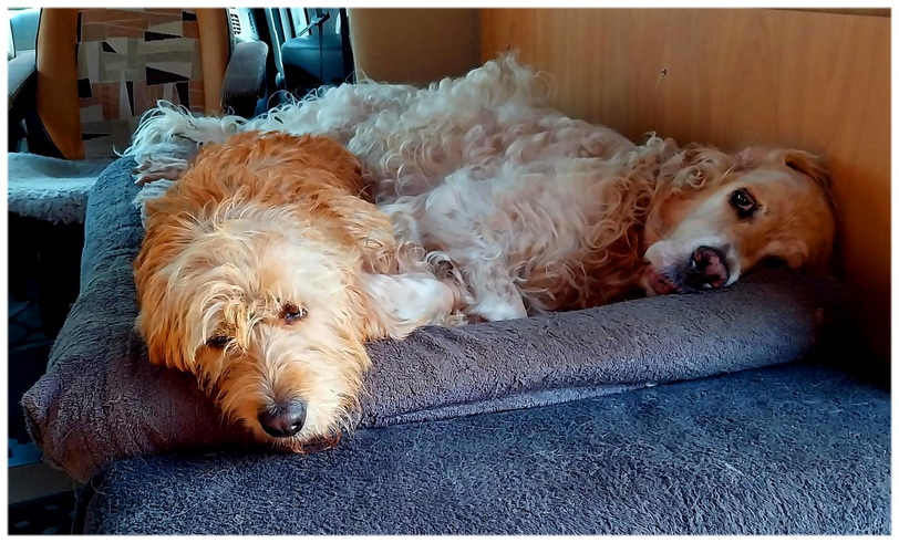 De Mazzel, vernoemd naar hun hondje ---------- Vrijdagmorgen 17 januari. Vandaag begin ik de dag met een schouderklopje voor mezelf, zoveel heb ik al gedaan. Dick is met de meisjes weg, ik vanmiddag weer en de avondronde doen wij samen. Heerlijk vind ik dat tijdje alleen in de vroege morgen. En als Dick dan thuiskomt, vraag ik eerst of alles goed gegaan is, of hij nog iets leuks gezien heeft, zoals wild of zo, ik hoef niet te vragen wie hij gesproken heeft want je komt namelijk nooit iemand tegen, dus belangstelling tonen en ik meen het nog echt ook. Ja en dan wil ik graag vertellen wat ik allemaal gedaan heb die tijd en luistert hij maar half naar mijn gebrabbel. Kan ik mij ook wel een beetje voorstellen hoor, dan gaat het zo: 'Goh ik heb zoveel gedaan, (start altijd met de gewoontes), terrasdeuren naar buiten open, slaapkamerraam wijd open, waterbakken van de honden afwassen, bakken klaarzetten met hun maaltje voor als zij thuis komen, bedden opmaken, koffie alvast klaar zetten en noem maar op . . . Nu staat er een brood te bakken in de machine, een cake in de oven, ja ook dat nog. Futiliteiten dat weet ik maar het moet gebeuren en ik vind het nog leuk ook, dat mag toch, zeker als je op leeftijd bent? Omdat Dick dit niet interessant vindt vertel ik het jullie maar, hoor toch geen commentaar☺ Op dit moment hoor ik in de verte, niet erg ver hier vandaan, een machinegeluid en misschien heeft Dick iets gezien of gehoord . . . O zo stil is het leven hier en daar moet ik wel eens om lachen, als de vuilnisauto één x in de twee weken langs komt, kijken de honden al op van dat geluid, een verstoring van de rust haha ---------- Donderdagmorgen 16 januari. Mistig vandaag, niet echt erg hoor, maar toch. Er was gisteren geen bergingsvoertuig nodig maar wel een tractor van een 'buurman'. Gelukkig was er geen schade aan de camper. Dit soort ongevalletjes gebeuren ook vaak in slow motion, lijkt mij wel erg als je er in zit en je het langzaam voelt voltrekken zonder dat je er iets aan kunt doen . . . Wij wonen nou eenmaal in een sneeuw- en ijsrijk gebied en kan dit zo maar gebeuren, ook zonder ijs of sneeuw natuurlijk, er zijn overal greppeltjes om huizen vanwege de afvoer van smelt- en of regenwater. Tot nu toe, laat ik het afkloppen, is zoiets ons nog niet overkomen en ook wij rijden elke dag met de auto en lopen over dit soort weggetjes. Gek genoeg ben ik ook helemaal niet bang of terughoudend om te lopen of rijden, we doen zoveel mogelijk om vallen te vermijden. Gisteren ook nog even langs Chris de bbqman gegaan om wat NL levensmiddelen op te halen, zoals een paar stukken kaas, rookworst en erwtensoep, de laatste hebben wij dan ook gelijk gegeten, hmmmm zo lekker! Makkelijk hoor, hij woont op loopafstand en ik werd gelijk op een lekker bakkie cappuccino gevraagd. De erwtensoep (maakt Chris zelf) is misschien nog wel lekkerder dan wanneer ik het zelf maak en Dick vindt mijn soep eigenlijk onovertroffen, leuk toch en voor mij dan een makkie! ![]() Dit is echt balen hoor☺ ---------- Woensdagmorgen 15 januari. Gistermiddag zag ik pas dat ik niet geupload had terwijl ik dacht dat het wel zo was. Kennelijk had mijn 'postkantoortje' nog geen verbinding met het internet en heb ik dat ook niet meer nagekeken omdat het normaal gesproken vanzelf gaat. Heeft het gisteren behoorlijk gedooid en bij de avondronde weer een lekkere vriestemperatuur, en ja daar voel ik mij toch echt het beste bij. Mooie glitterboompjes en ja ook wat anders, op ons kleine weggetje zagen wij in de verte oranje knipperlichten en wat was dat noui? De mensen die daar wonen wilden kennelijk achteruit inparkeren en namen het verkeerde paadje . . . beide achterwielen van hun kleine campertje stonden in de greppel en zie daar maar eens uit te komen! Dick twijfelde nog even om hen te helpen maar volgens hem moet daar een bergingsauto bij komen, althans een zwaar werkpaard want het is een smal weggetje en zo maar even er uit trekken is niet mogelijk want campertje staat ook nog eens scheef en op de weg ligt nog een ijslaag. Op dit moment, de vroeg morgen staan zij nog hetzelfde . . . Best een beetje jammer van de dooi want als er één hond van sneeuw geniet is het wel Elin, Robbie ook maar Elin nog met dat jeugdige enthousiasme! Zij raust er door, springen, rollen over haar rug, krijgt de gekkeritis, kortom zij vindt het heerlijk. Dick heeft gistermorgen een wandeling gemaakt waar nog een dikke sneeuwlaag lag, daar was nog geen mens geweest, en ook Robbie vindt dit kicken. Maaruh mij hoor je verder niet hoor, de winter is hier nog lang niet voorbij en daarbij al goed te merken dat de dagen duidelijk langer zijn. ![]() Dit kwam ik tegen op Pinterest en inderdaad bij -4 krijgen onze honden een jasje aan, Robbedoesje is 25 kg en Elin 11 kg. ---------- Dinsdagmorgen 14 januari. Getver het is kwakkelweer, paar graden boven 0 en dan weer even onder 0, hier houd ik niet van. Het enige voordeel is dat het gewoon droog is en nu de dekbedden buiten kon hangen, het huis een half uur gelucht heb, alle ramen en deuren open. Ik las dat dat beter is dan van die luchtbevochtigers aan de radiator te hangen, dat gaat vaak schimmelen en om die dingen elke dag af te wassen voel ik ook niet veel voor. Het filter in de elektrische luchtbevochtiger moet ook regelmatig schoongemaakt worden en dat doen we dan ook. Halverwege de nacht heeft Dick de echtelijke sponde verlaten, zo verschrikkelijk hoesten en vindt hij erg voor mij, is het ook☺ Hij is met zijn dekbed op de bank gaan liggen en vindt dan het gezelschap van de hondjes heerlijk die onder het dekbed bij hem komen liggen. Dit duurt niet al te lang want dan krijgen zij het toch echt te warm. Gisteren alle kerstspullen weggehaald en de verlichting buiten misten wij dan ook gelijk, jammer altijd zo gezellig. ---------- Maandagmorgen 13 januari. Hoe het met de honden is? Best een beetje wisselend, vrijdag avond j.l. dachten wij dat het zaterdag met spoed naar de da zou gaan, verdere dag geen kuch gehoord en