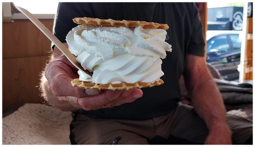 Dick met babyhondje, ChatGPT ☺☺☺ ---------- Woensdagmorgen 4 juni. Time flies. Weer van alles gedaan en eigenlijk niets interessants voor de krabbel. Natuurlijk in politiek opzicht voor mij best een spannende tijd en toch probeer ik mij er zoveel mogelijk aan te onttrekken. Het weer dan maar, het is hier wisselvallig met mooie en minder mooie dagen en het leven kabbelt voort. A&E blijven het toch wel moeilijk vinden, die inbraak in hun huis, wat inmiddels door de familie al netjes opgeruimd is, en zij het zelf nog niet gezien hebben. Snap ik, maar verknald toch wel een beetje je vakantie, zaterdag vertrekken zij weer naar NL. Morgenochtend vroeg gaat Wendy met de trein vanuit Swifterbant naar Zweden! Eerst naar Kiel, dan met de nachtboot morgenavond van Kiel naar Göteborg waar Dick haar ophaalt vrijdagmorgen met de auto. Een hele reis met twee honden! ![]() Langs de rivier is een mooi kindereducatiepad wat nu helemaal gerenoveerd is, zo leuk, en deze levensechte elanden zijn er net ook geplaatst! Die grote gaten voor mensenhoofden er in . . . beetje onnodig toch, is míjn mening dan. ---------- Maandagmorgen 2 juni. Er was gigantische tante Aurora voorspeld en ik had mij voorgenomen de wekker vannacht om 2 uur te zetten, niet dus. De donkere nachten zijn hier nu erg kort dus weinig kans om tante tegen te komen. Gisteren veel tijd met de koptelefoon doorgebracht, ik had (heb) wat in te halen ivm visite☺ A&E kwamen in de middag hier lekker frites eten, nog wat nababbelen en vertrokken zij weer. Vandaag een dagje vrij want zij gaan zelf een dagje naar wat plaatsjes in de omgeving en geeft mij best wel een beetje rust eerlijk gezegd. Hoe je het ook wendt of keert, we zijn geen 45 meer . . . en ik tol 's avonds toch echt van de slaap zo om een uur of half tien. ![]() Niets aan toe te voegen ---------- Zondagmorgen 1 juni. Wat een fijne dag gisteren weer, jaja er zijn nog meer leuke dingen dan camperen☺ O ja eerst nog even, sorry voor de tikfouten gisteren, teveel haast en ook niet meer nagelezen, zo gaat dat dan. De lunch was overheerlijk en beviel ons allemaal heel erg goed, wat een keuze en zo lekker! Eigenlijk zaten wij alles zes nog met een rest bbq in de pens maar huppakee, toch een beetje uitkijken en niet teveel vlees. En dan dat toetje jongens, jeetje zeg, zo lekker, daar kon je je hele maaltijd mee doen! Een uur of 3 in de middag allemaal weer naar ons eigen stekkie, lafuma's op het terras, nadat Dick eerst nog even met de meisjes weg geweest is en daarna languit op de stoelen in de zon tot gisteravond volgens mij een uur of 8 en toen werd het te koud en uiteraard hoefden wij niet meer te eten. Halverwege de avond nog een peer en een bakje yoghurt met (veel te dure) verse aardbeien. Vandaag hier straatloppis dag en wij denken zo maar dat wij dit aan ons voorbij laten gaan. ---------- Zaterdagmorgen 31 mei. Gisteren weer een leuke dag, mooi weer dus lekker buiten! In de middag met Aad en Eefje naar Joke en Anne omdat wij uitgenodigd waren voor een bbq, altijd weer gezellig! Ik heb een betaalde weer app en houd mij vast aan goede berichten dus geen regen . . . de wolken kwamen en gingen en werden steeds donkerder, maar ja die betaalde app hè . . . Joke had het lumineuze idee om de aanhanger onder het afdak vandaan te halen voor de zekerheid dat áls het ging regen wij een dak boven ons hoofd hadden . . . Jaha zij kreeg gelijk, en in een sneltreinvaart alles onder het afdak en wij vonden het nog stikgezellig ook om zo te bbqen! De temperatuur was nog lang heerlijk en voor het koud werd hebben wij weer afscheid genomen na heerlijke leuke uurtjes,bij thuiskomst rondjehondje, nog even herhaling 'Nieuws van de dag' gekeken en toen naar het mandje. Vandaag gaan wij samen lunchen, ook weer leuk in een gezellige ambiance en het is prachtig weer! ![]() Rennen Anne met die brandende bbq, dank je ChatGPT☺ ---------- Vrijdagmorgen 30 mei. Oh gisteren Hemelvaartsdag en ik wist dit niet eens meer . . . Zo leven wij dus, vaak nergens mee bezig, oei nou dat zou ik eigenlijk ook niet moeten zeggen want mijn geest is wel degelijk met allerlei dingen bezig, vermeld ik hier niet. Goed, laat ik het hier bij onschuldige dingetjes houden (uh ik houd mij altijd bezig met onschuldige dingetjes hoor), in de Baltische Staten hebben wij platte mooie stenen gezocht, misschien weten jullie nog dat ik die met zo'n mooi grijpertje van de grond moest pakken☺ Wat moet je daar dan mee, nou schilderen dus, dat eigenlijk niet maar met acrylstiften bewerken. Ik probeer mij wat voor te bereiden op de tijd straks dat ik voor een behoorlijk lange tijd alleen maar mijn rechterhand en arm kan gebruiken en volgens mij kan ik wel tekenen met alleen rechts. Dus al verschillende pakjes met gave acrylpennen gekocht, alleen van die kleurtjes word je al blij. De stenen heb ik inmiddels allemaal al schoongemaakt en liggen klaar. Gisteren had ik een lekkere lunch voorbereid en zaten we heerlijk buiten met Aad en Eefje, en voel je je wel rijk hoor, gewoon in het bos aan je eigen tafel op je eigen terras! Daarna hebben we een tijd gelafumeerd, dat is languit in de zon/schaduw. Had het er net met Dick over, gisteren pakte ik wat uit de camper, sta dan even stil en kijk rond en verlang ik alweer zo naar camperen! Natuurlijk is het thuis ook fijn, maar dat reizen met onze hondjes en elke dag een ander mooi plekje, echt genieten! Rijdend door kleine aparte dorpjes, bedenken hoe de mensen daar leven en werken en je af vragen wáár leven zij nou van? O ja, met mijn rug gaat het wat beter en heb ik gisteren al een minuut of 20 gelopen. ---------- Donderdagmorgen 29 mei. Gisteren geen tijd gehad, moesten om 9 uur al weg omdat ik om 10.20 uur een afspraak in het zh had. Daarna nog snel paar boodschapjes gedaan, en wel heel snel ook hoor, mooi weer, hondjes in de auto. Auto wel in de schaduw maar toch, we weten niet hoe snel we door die winkel moeten scheuren en besluiten om maar bijna niks mee te nemen, geen rustige seconde. Na he