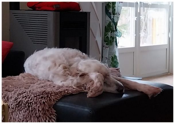 ook hebben!---------- Donderdagmorgen 30 januari. En toch is het zeker voor mij, dit is het laatste jaar Krabbels, niet dat ik geen stukjes meer tik die niet leesbaar zullen zijn, want dat is ook niet zo. Maar wel in een andere vorm, noem ze dan waarschijnlijk wel krabbels, waar ik nu al voorzichtig mee bezig ben. Alles is eindig in het leven en soms, zeg maar vaak, doet het pijn. Tijden veranderen en moet ik nog wel wat mee bewegen, maar deze site bestaat al vanaf 2001 . . . En ja Gordon Setters hebben we ook al een tijd niet meer, blijft ook een pijnpuntje. Maar goed, een feit is dat ik nog altijd met een ouderwets systeem werk wat veel tijd kost en tijd is er wel maar het kan makkelijker en moderner. Volgens Dick ben ik een aparte, houd niet van nieuwe dingen, maar ook bijvoorbeeld auto's, geef mij maar het oude vertrouwde model en zo gaat het heel vaak. Ben een echte stier qua sterrenbeeld en hou niet van veranderingen, vandaar ook dat ik die aantrekkelijke Zweedse man van gisteren maar met rust laat . . . Momenteel loopt er hier een man rond te stekkeren die zijn bril weer eens kwijt is en heb ik heb geadviseerd om er maar een tracker aan te hangen☺ ![]() Hoe lief wil je het hebben? ---------- Woensdagmorgen 29 januari. Oei moest eerst een tikfoutje van gisteren veranderen, zeg niet welke hoor, zo'n domme. Ja en dan, het sneeuwt, nu nog dikke natte zooi maar straks verandert het in droge sneeuw. Fijn voor Elin, die geniet echt van een dik pak sneeuw, wordt er helemaal dol van en dat is zo leuk om te zien, voor haar ook een mazzeltje dat zij in Zweden woont! Dick heeft net weer fijn met ze gewandeld in Skymnäs, waar nog weinig mensen gelopen hebben, alleen ziet hij zijn eigen oude voetstappen! En zoals elke dag en in de middag na mijn ronde, hondjes lekker eten, daarna pakt Elin haar 'speel' en speelt Dick weer een kwartiertje of zo met haar wat zij ook weer zo leuk vindt. De speel is zo'n slappe piepende plastic kip in een lange sok, het kan zo simpel zijn☺ Dan is het tijd voor een diepe slaap, heerlijk vinden wij dat om naar te kijken, Robbedoesje opgerold in de donut, Elin op een vachtje ineengedoken tegen een kussen, zo vredig ♥ Haha Agnes wij vinden elkaar dus gewoon stoer, leuk toch, die ervaringen uitwisselen! En toen kwam ik met een bekentenis tegen Dick . . . Zweedse mannen zijn vaak onweerstaanbaar en nu raakte ik in één klap verliefd . . . Lekker