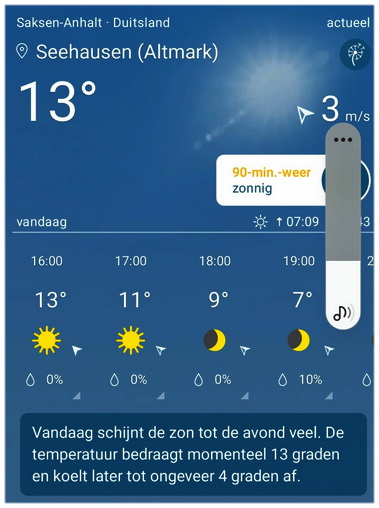 ![]() Overnacht van 25/26 in Seehausen, en ja hoor, voor het eerst weer eens heerlijk uren in de zon! |