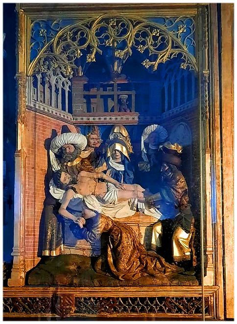 Twee opmerkelijke 15e-eeuwse Vlaamse/Brabantse altaarstukken van gesneden en verguld hout, afkomstig uit de kerk van Saint-Roch in het kleine dorpje Ternant (departement Nièvre) in Midden-Frankrijk.Deze stukken, die sinds 1881 als "Monument Historique" (historisch monument) geregistreerd staan, zijn uitzonderlijke voorbeelden van middeleeuwse religieuze kunst en tonen zowel Vlaams vakmanschap als de invloed van de lokale Bourgondische aristocratie. |