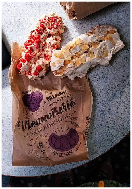 ![]() Altijd van die leuke uithangborden en zoveel lekkers in een goede patisserie, helaas geen croissants aux amandes, maar dit was ook niet te versmaden en hoefden wij 's avonds niet te eten☺ |