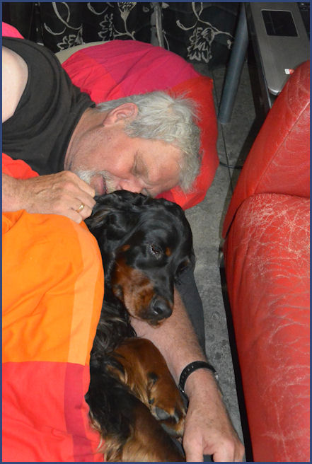 ![]() Tja dan moet ik wel even lachen hoor, ik had een zacht en een stevig bedje voor Noor gemaakt waar zij uit kon kiezen, keurig een bak water er bij, en waar ging zij liggen? Ja hoor lekker bij Dick onder het dekbed! |