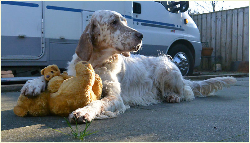 | Roosje heeft een puppyspeeltje in de garage gevonden |